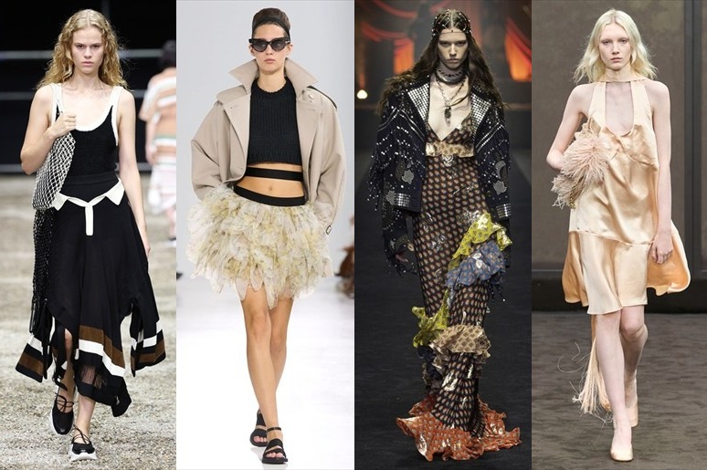 大胆なスタイリングが目立つ。ロングのダブルブレストコートの胸元からブラウスのリボンタイを出したり、フローラルプリントや艶黒のロングコートのルックのボトムスはショートパンツとロングブーツにしたりと、マニッシュとフェミニン、ハードとソフトネス、シャイニーとマット、ロングとショートなど相反する要素を重ねたスタイリングが見られた。パンチを効かせつつも、精緻なバランスを保った。