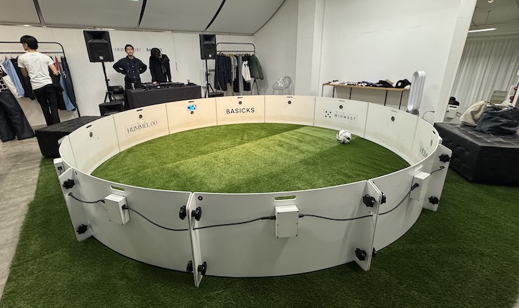 会場では、「ヒュンメルオー(HUMMEL 00)」と「ベイシックス(BASICKS)」が2025秋冬コレクションを中心に展示・陳列し、両ブランドが持つ世界観を体感できる空間となっている。さらに、「ヒュンメルオー(HUMMEL 00)」では2025秋冬キャンペーンビジュアルを初公開。会場内には、ヒュンメルのコアでもある“サッカー”にフォーカスした インスタレーションも設置され、森川氏が構築する世界観を具現化した内容となっている。
