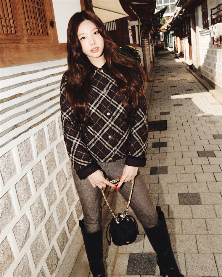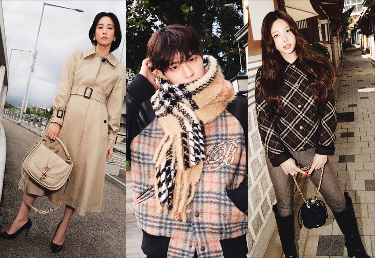 さらに、「バーバリー」チェックのコットンツイルにコーデュロイトリムをあしらったクロップドキルティングスタイルで、エクエストリアンナイトタブを通してブランドのヘリテージにオマージュを捧げた「オールダム(Oldham)」ジャケットは、ナヨンが、パッドショルダーとジャカード織りのチェックライニングで、英国仕立ての美学をレインウェアに落とし込んだ「ブラックストン(Blaxton)」トレンチコートはソンが着用した。