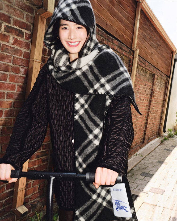 同作では、彼らがそれぞれの視点から、アーカイブのディテールをモダンなシルエットに融合した「バーバリー」のアウターウエアが持つ伝統を表現。水川さんは、フィット&フレアのAラインシルエットに進化した「エリングハム(Ellingham)」カーコートを、チョンは、カントリースタイルのキルティングをコーデュロイトリム付きのボクシーなフォルムで再解釈した「フロリストン(Floriston)」ジャケットを着用した。