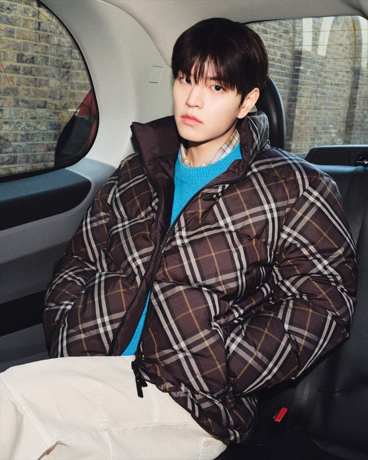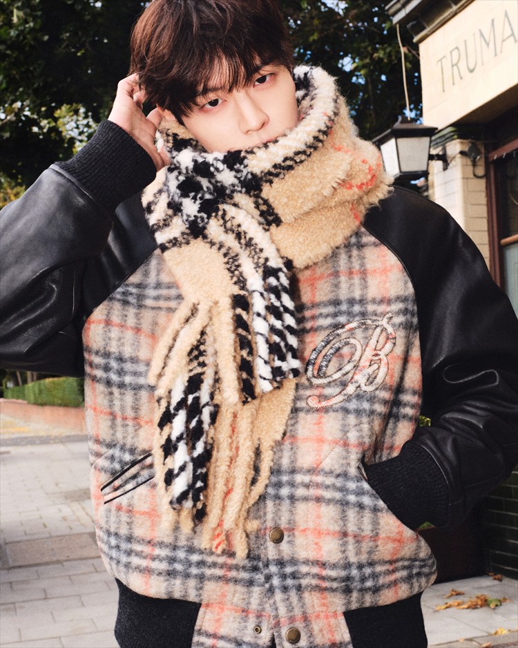 また、「スノードン(Snowdon)」ジャケットは1980年代に「バーバリーバッグ」で初めて登場した「ナイトスタンプ」をアップリケとして施し、リバーシブル仕様のパファージャケット。スンミン、ブライトが纏った。