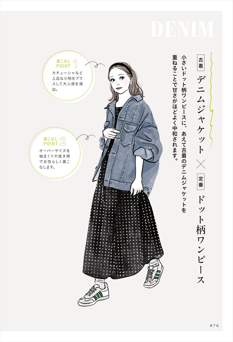 特筆すべきは、ターゲットを30〜40代前後の成人層に据える編集方針だ。忙しい日常を送りながらも「お金も時間もかけすぎずに、おしゃれでいたい」という現実的な願いに応えようとする姿勢が、実用書としての信頼感を高めている。若者のビンテージ文化とは一線を画し、大人の節度ある楽しみとして古着を位置づける点に、本書ならではの成熟した視点が光る。
