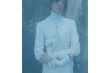 前半のセクションでは24年春夏「UTAKATA」、24年秋冬「UNVEIL」のコレクションの一部やマテリアルを紹介。後半は、1月29日にパリで発表した25年春夏「FADE」の全ルックを展示し、環境負荷を抑えた物作りやテクノロジーの詳細を説明する。