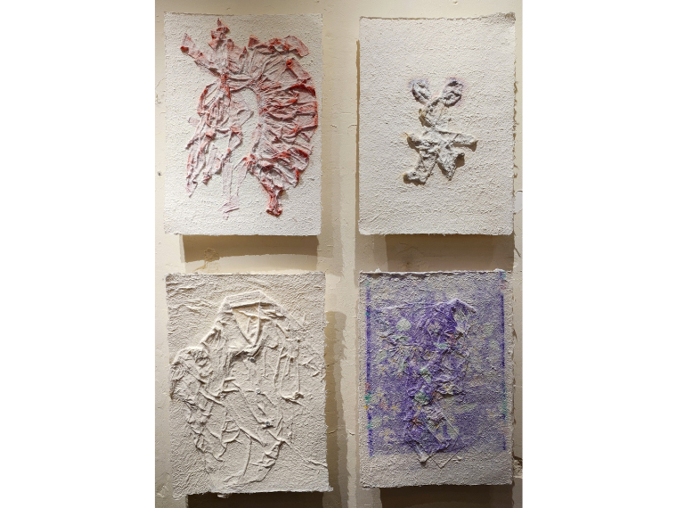 山縣良和が主宰する「リトゥンアフターワーズ」は、新たなプロジェクト「Where the Story Ends」を始めた。衣服を元に作り上げた平面作品で、12月7日まで東京・銀座1丁目の森岡書店で20点を展示している。
