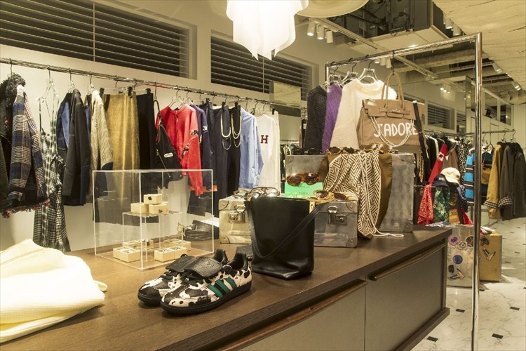 店頭のファッション雑貨の集積。手前のアディダスのスニーカーはインラインからのバイイング