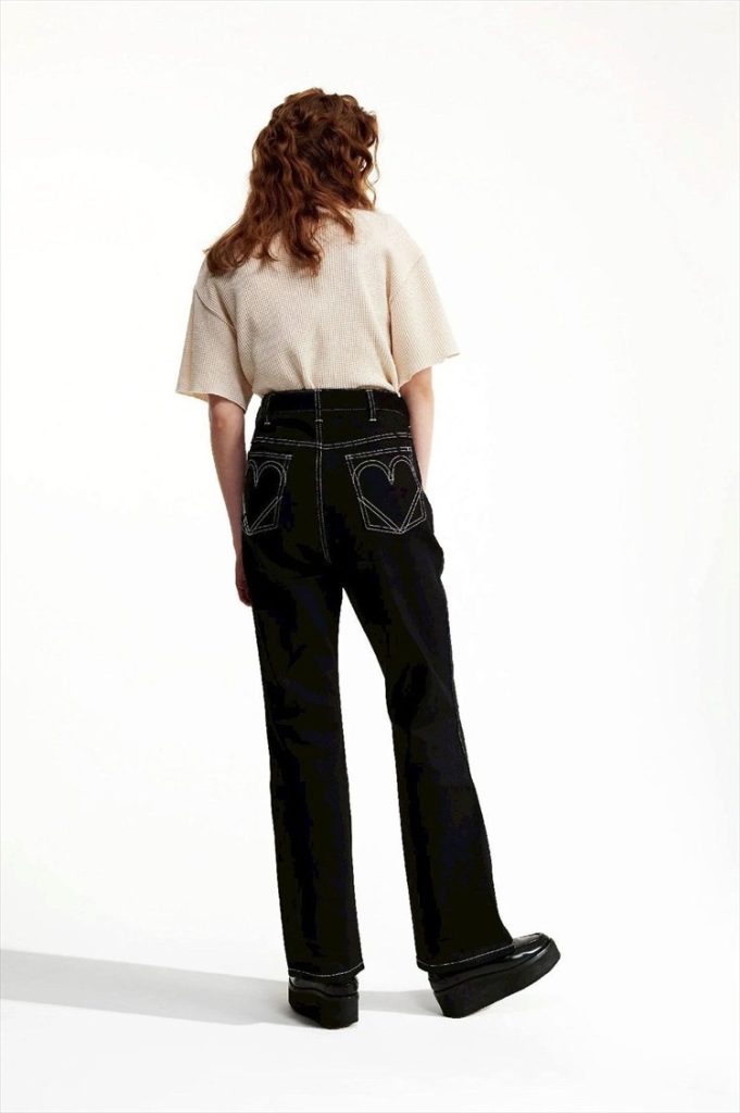 ダダでは意図的に固定の概念を作らないという考え方だったので、そういうことはしませんでした。ベイシックスではマルジェラの「四つ点」じゃないけれど、多様なアイテムを作っていく中で何か軸になるものが欲しくて、白のステッチと共にハートデザインを取り入れたんです。ただ、ハートは世の中に溢れているので、白のステッチをアウトラインにしたハートを制作しました。サステイナビリティーの観点から、リーバイスのビンテージデニムをリメイクし、バックポケットにハートデザインを施したパンツを作ったところ思った以上に反響を得て、ハートは定番デザインになりました。ハートデザインを取り入れた「NEW ERA(ニューエラ)」のキャップは毎シーズン、売り切れるアイテムです。