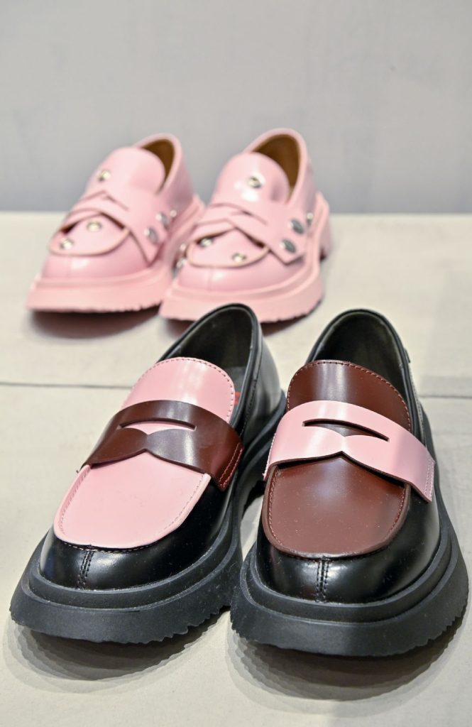 「TWINS(ツインズ)」では、クラシカルモダンなローファーのユニセックスモデル「WALDEN(ウォールデン)」の店舗限定モデルを投入。厳選されたプレミアムレザーと頑丈なアウトソールを組み合わせたタイムレスなスタイルに、バーガンディとパステルピンクのカラーブロックを大胆に配した。