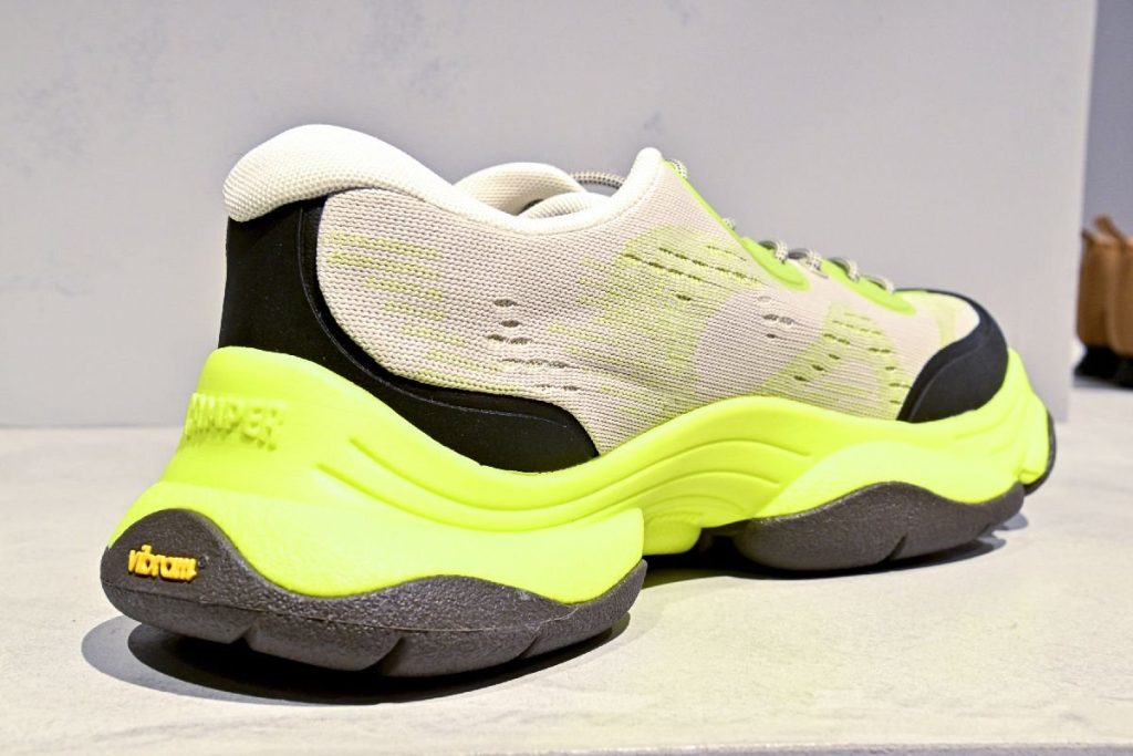 オープニングでは25年秋冬シーズンのコレクションから、渋谷パルコの客層を想定してセレクトしたラインナップをレイアウトした。 さっそく動いたのは、今季デビューした「KARST 2(カースト 2)」。自然由来素材とリサイクル素材を組み合わせたサステイナブルなユニセックスライン「KARST(カースト)」を進化させ、よりパフォーマンス性を充実させた。最大の特徴は、カンペールが独自開発した超臨界発砲技術による「ReXarge®フォームミッドソール」。発砲EVA素材により衝撃を吸収しながらエネルギーを還元することで、接地後の素早い反発性と快適な履き心地を実現した。アッパーは柔らかなレザー。アウトソールにはグリップ力に定評の高いヴィブラム社製を採用した。レースアップスニーカーとメリージェーンの2タイプがあり、レースアップタイプはツインズ仕様の左右非対称カラーも揃える。渋谷パルコ店では、レースアップタイプのアッパーにエンジニアードメッシュ素材を施した限定モデルも展開する。