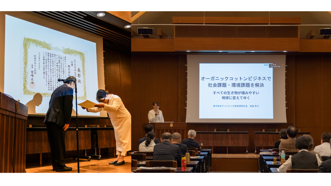 「PRISTINE(プリスティン)」を展開する株式会社アバンティは、昨年末、社会デザイン学会の2025年度「社会デザイン大賞」を受賞しました。これは「これからの社会のあり方を模索し、未来へ向けた創造的な実践を続ける研究者・団体を顕彰する賞」で、選考理由としては、「オーガニックコットンを軸としたソーシャルビジネスの先駆者として、日本の繊維産業に新しい方向性を示してきた企業」であり、「1985年の創業当初から一貫して『作り手・売り手・買い手・社会の四方良し』の実践を理念としてきた」ことをあげています。